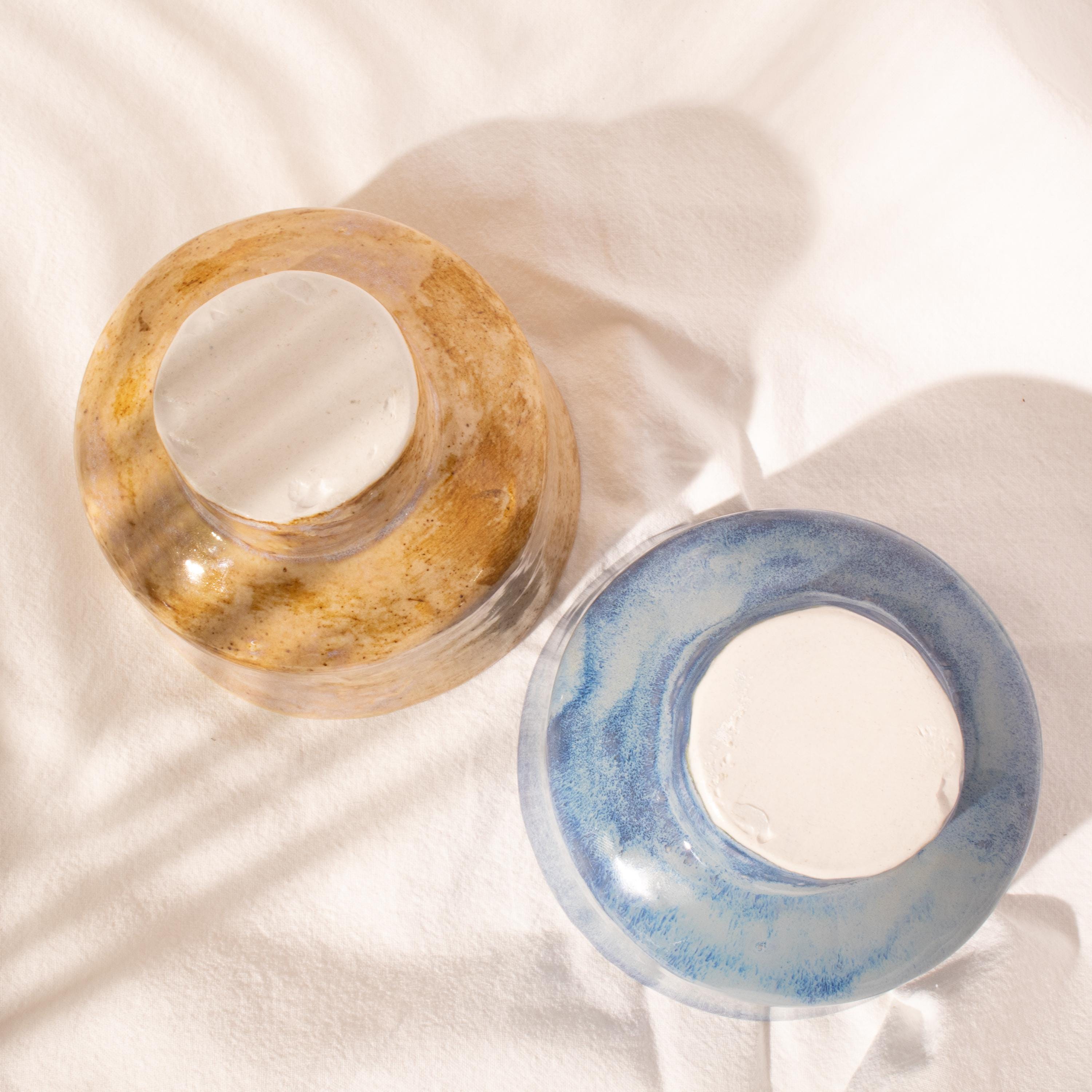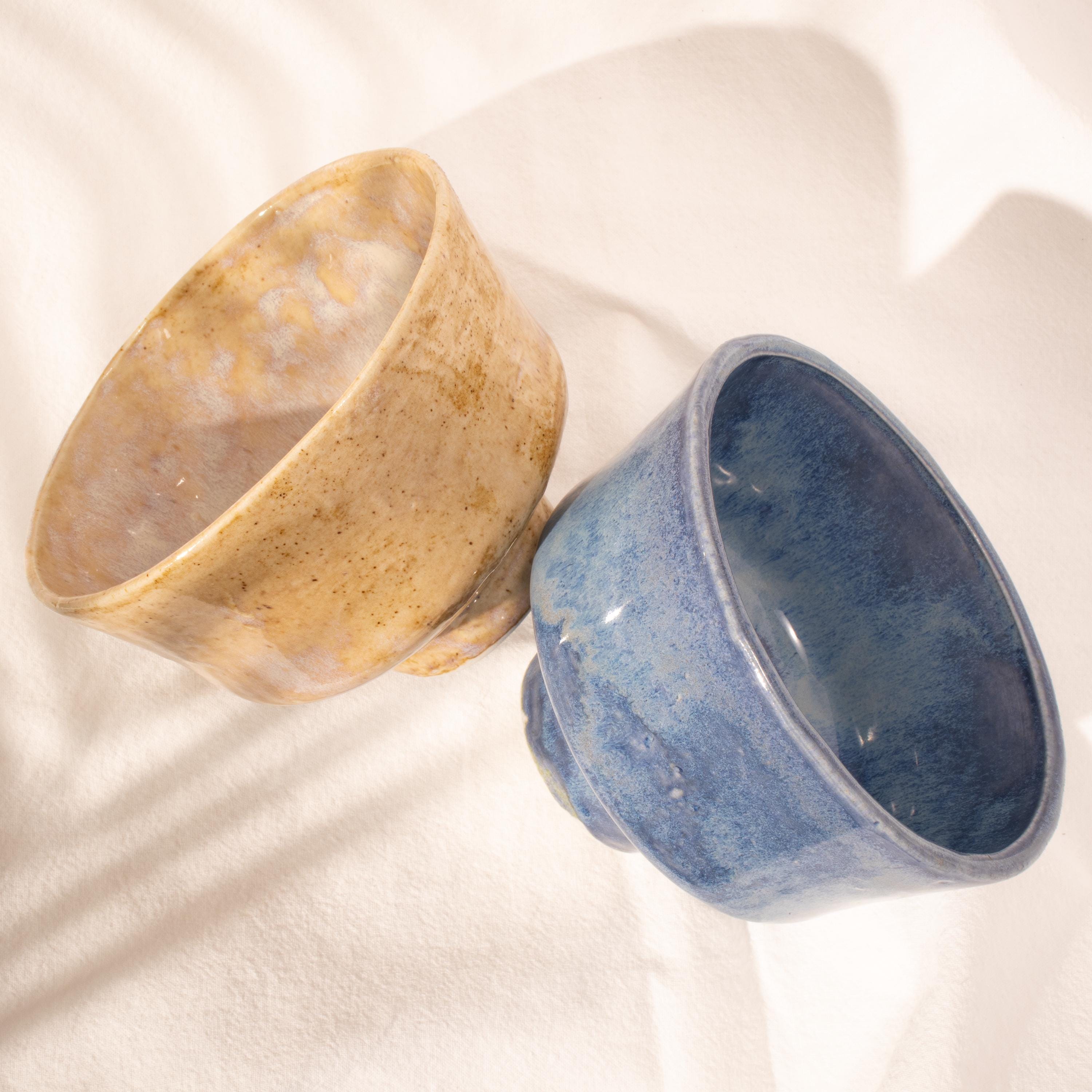 Capacity: 300β350 ml (10.1β11.8 fl oz)(varies slightly due to handmade nature) Dimensions: 4 in (10 cm) diameter Β· 3 in (7.5 cm) height Colors available: Beige π€ Β· Blue π