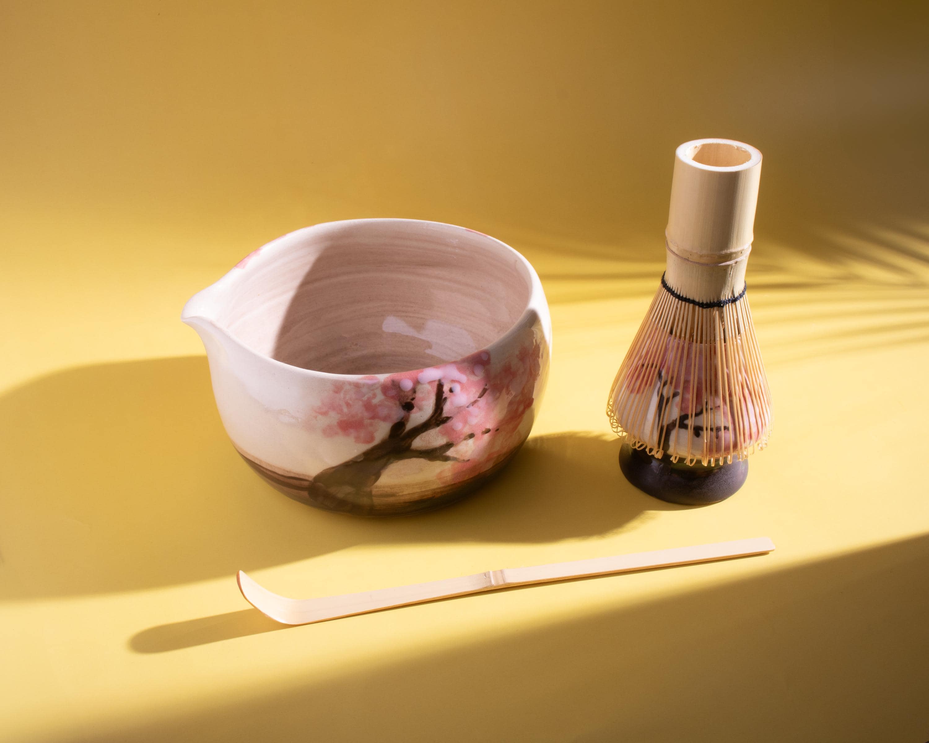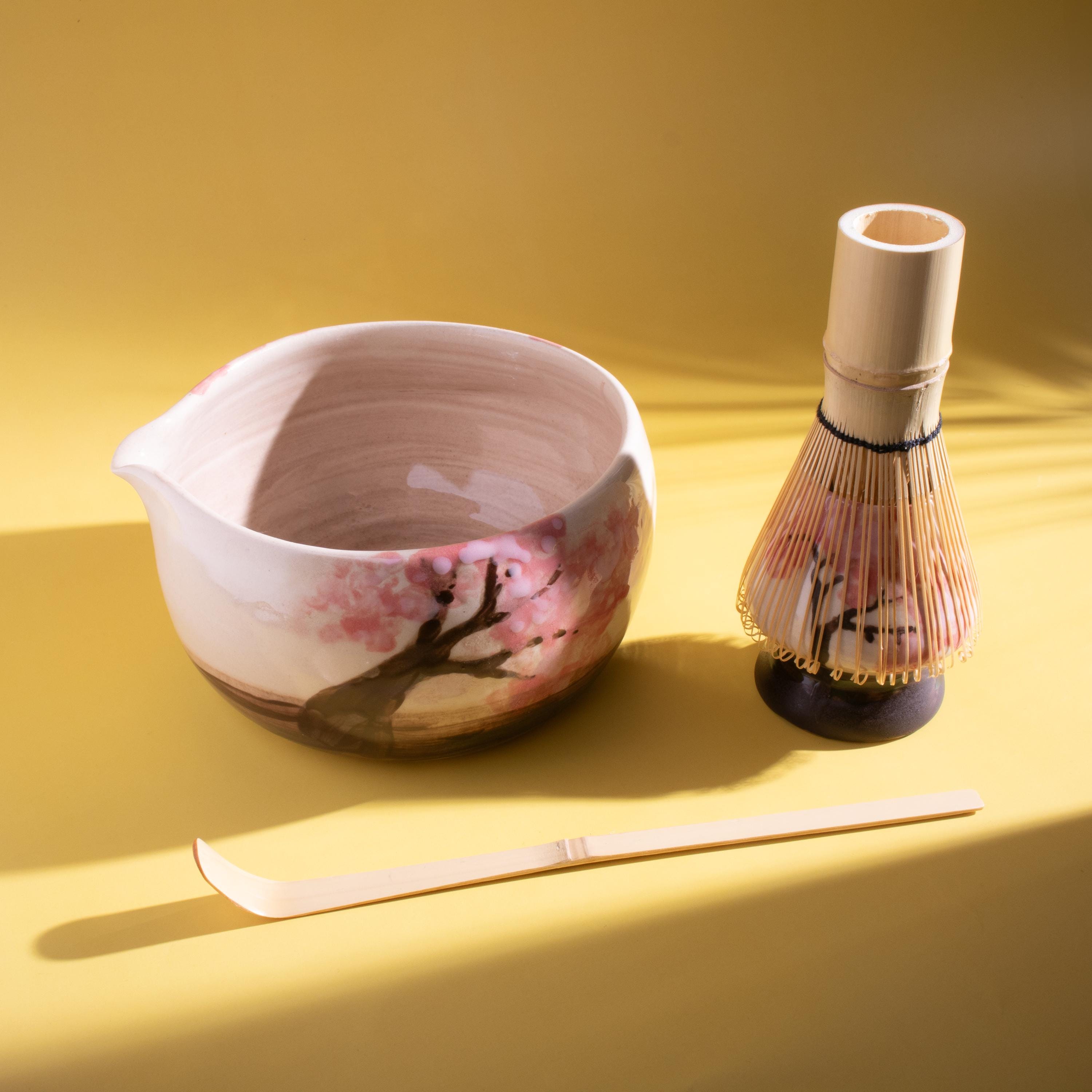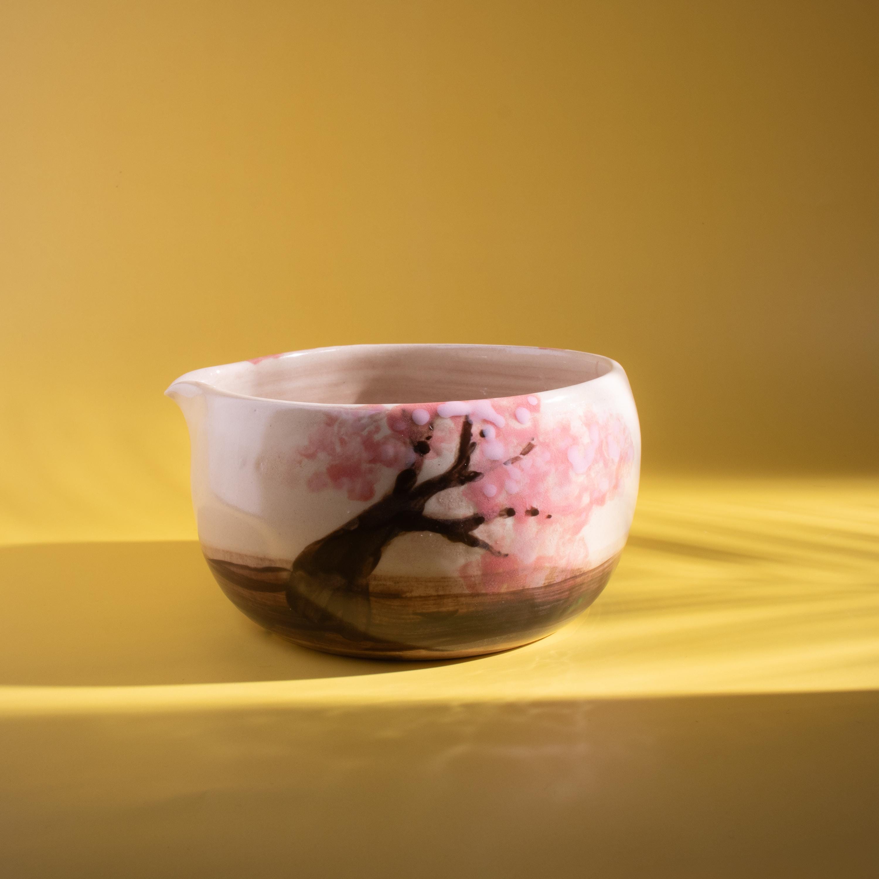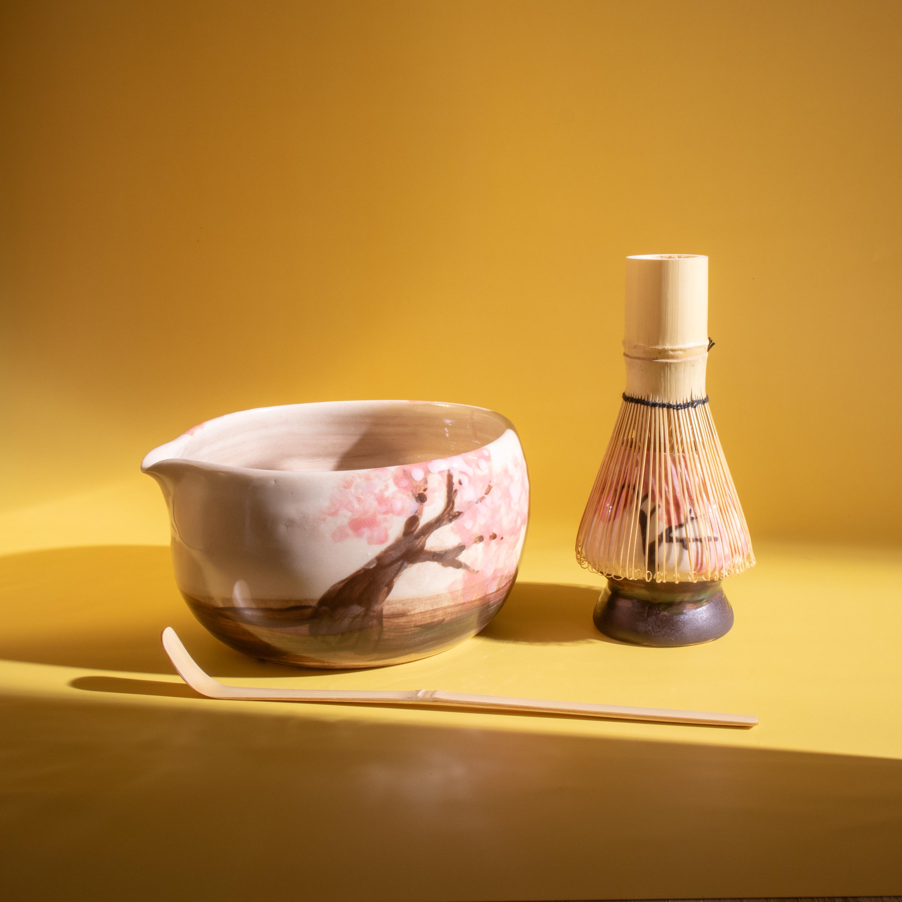 Highlights 🌸 Hand-painted Cherry Blossom design — each piece is unique 🔥 Fired at 1200°C (2192°F) for lasting durability 🍵 Includes a handmade bowl and matching whisk holder 🖐️ Wheel-thrown using traditional pottery techniques 🎁 Perfect for tea lovers, art collectors, and handmade gift seekers